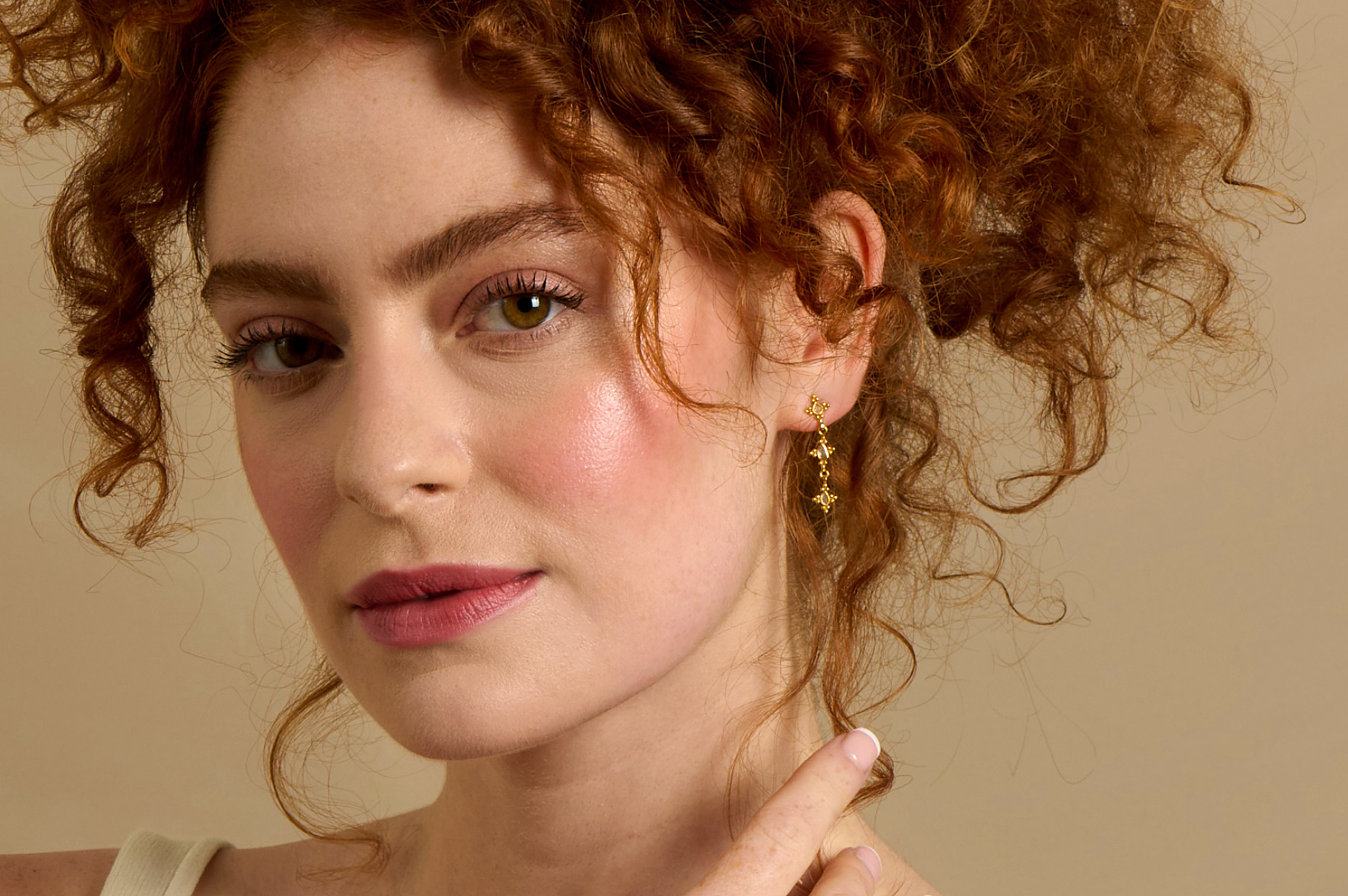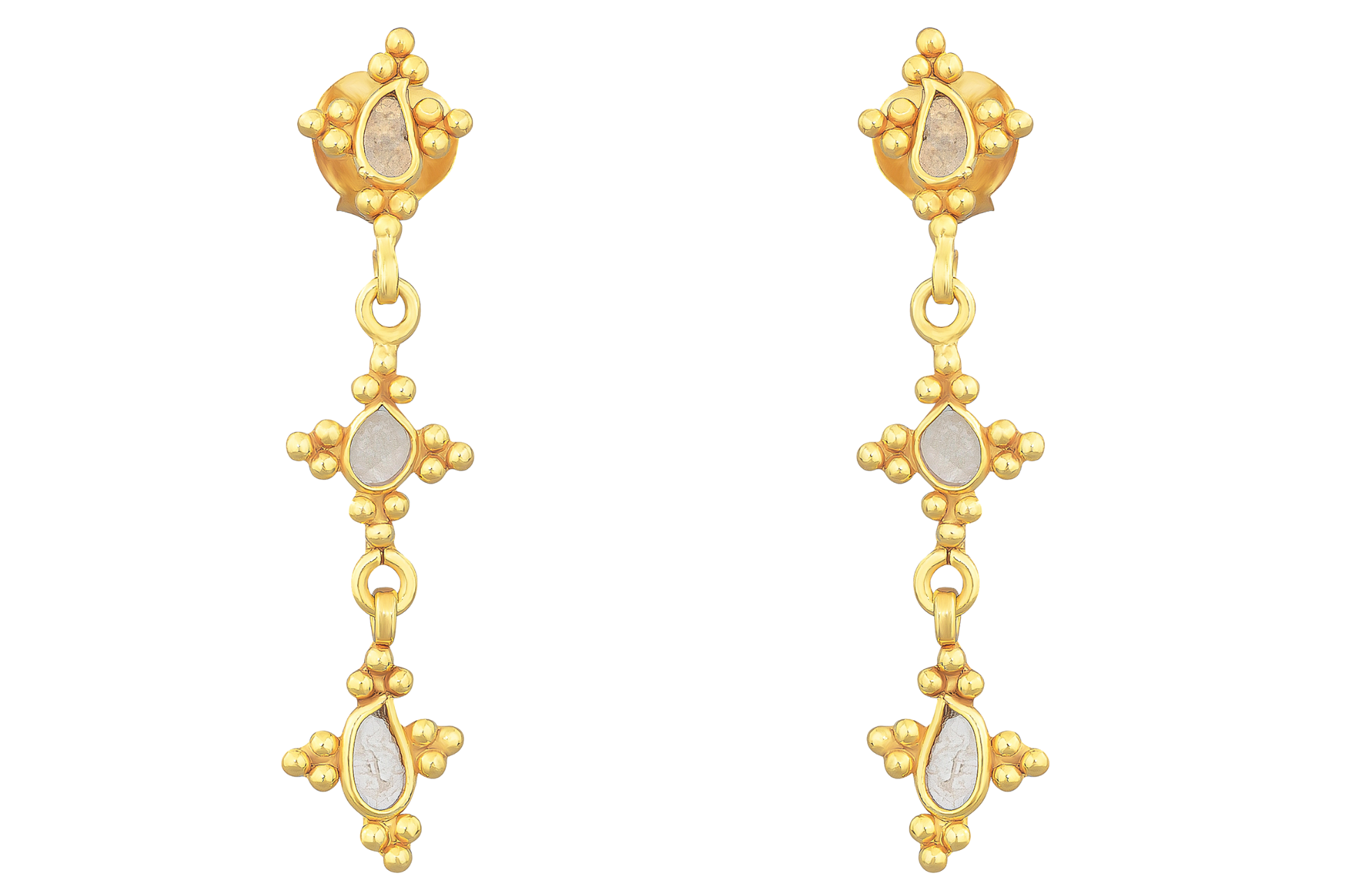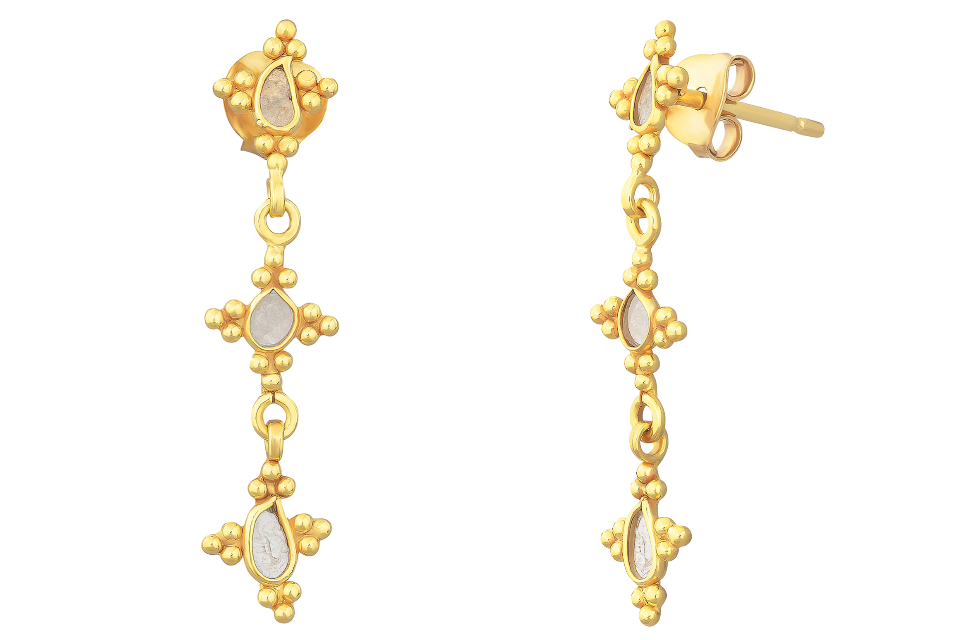Materials: the drop earrings are made of gold plated sterling silver and are set with diamond slices.