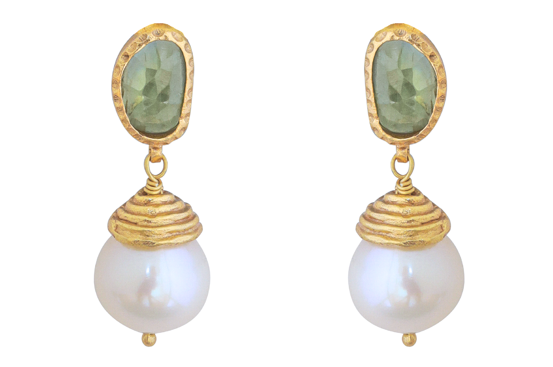 Materials: the earrings are made of gold plated sterling silver and are set with peridot and pearl.