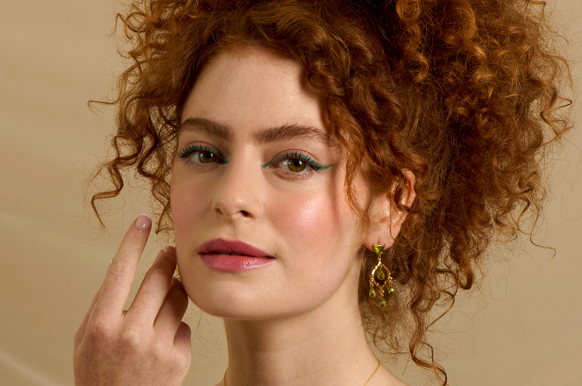 Striking, statement drop earrings with a twist, combing gold and silver finishes on the earring frame, to spectacular effect. Ellie wears the peridot version of this design.