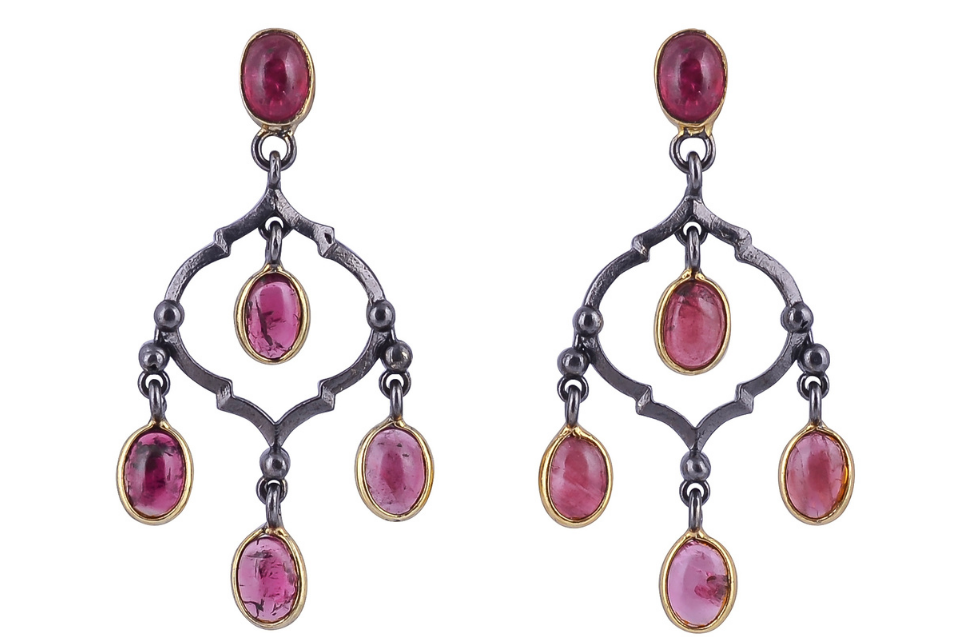 Materials: the earrings are made of a combination of oxidised silver and gold plated sterling silver and are set with ruby.