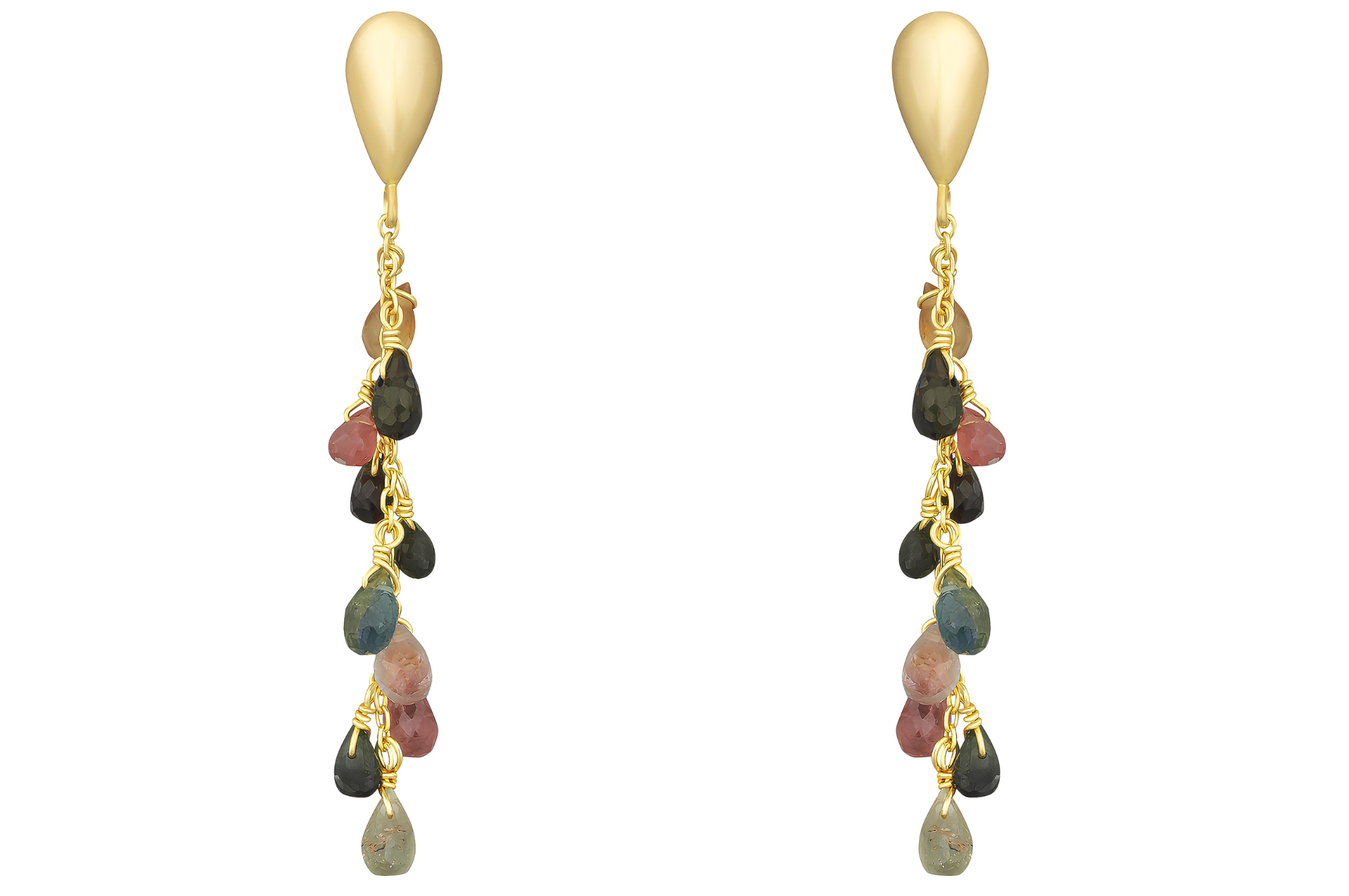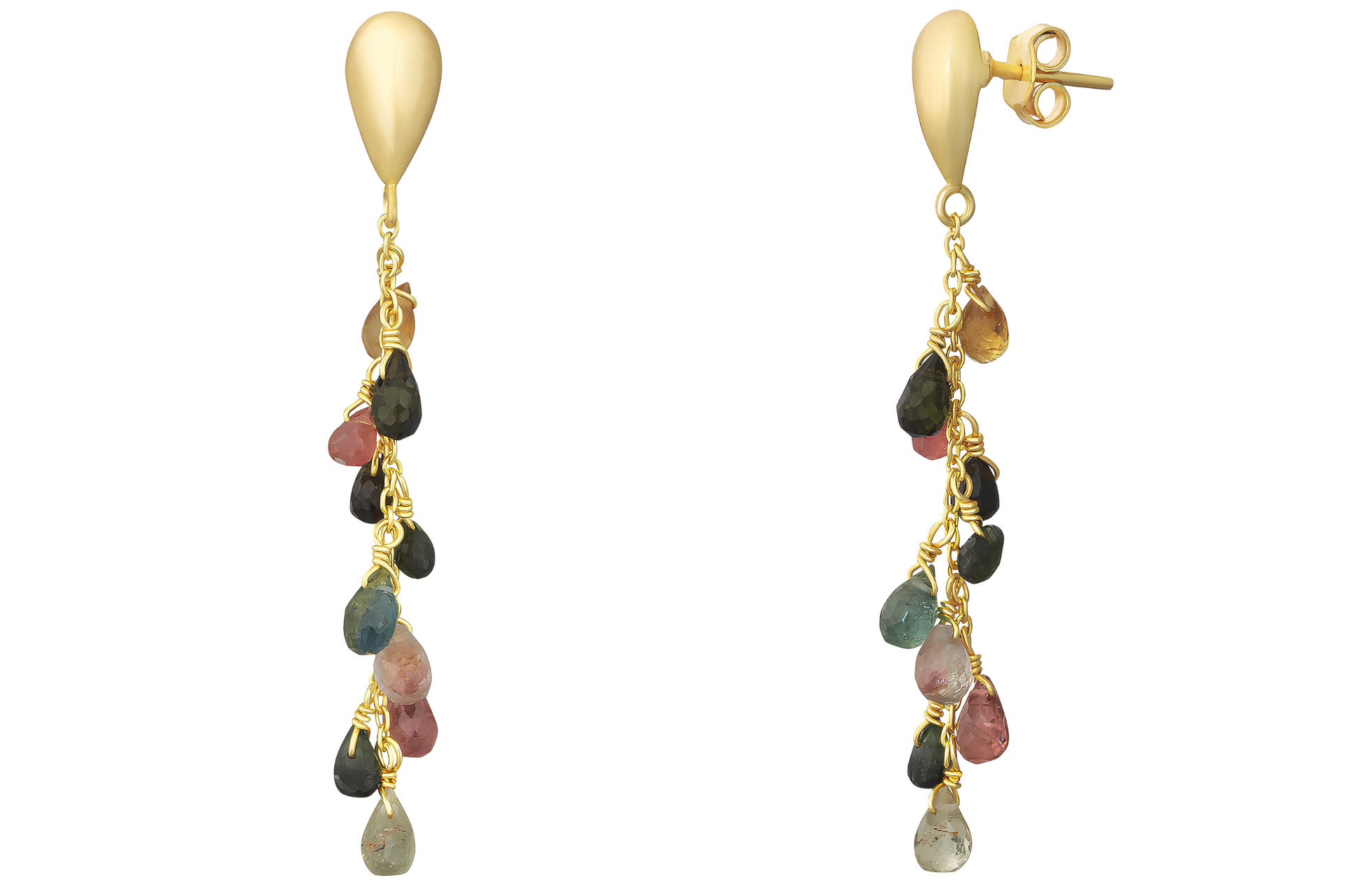 Materials: the earrings are made of gold plated sterling silver and are beaded with multi coloured tourmalines.